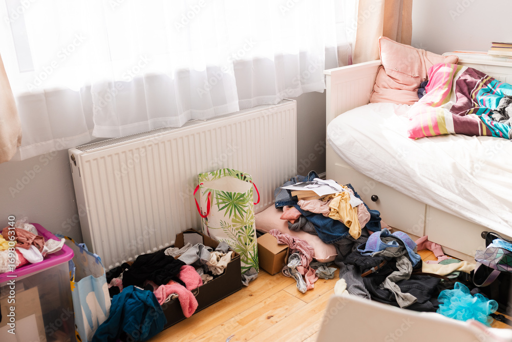 Messy Teenage Girl' s Bedroom with Clothes, Clutter and Chaos #1698063140