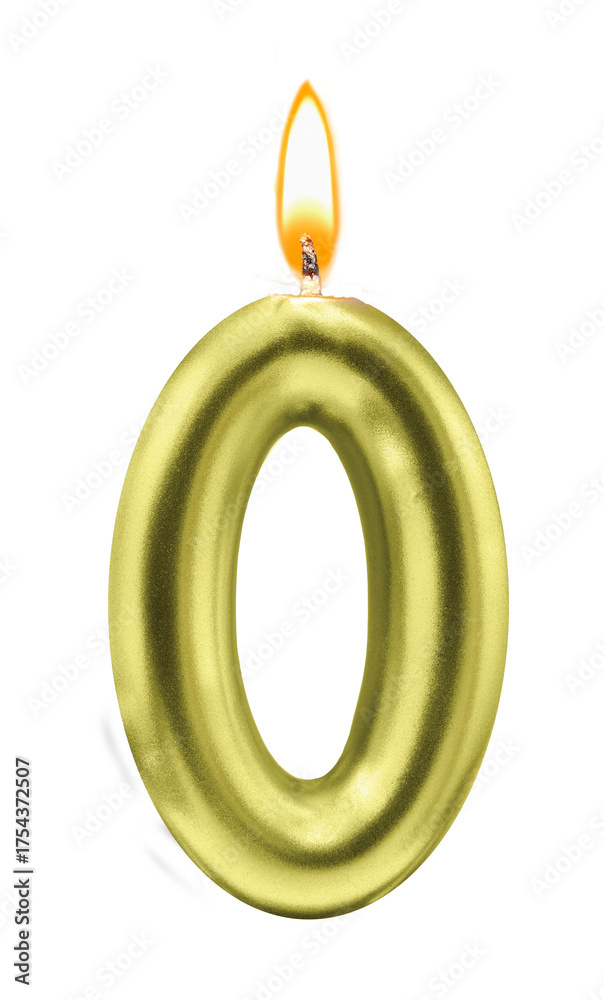 Metallic Golden Number Zero Candle with Flame #1754372507