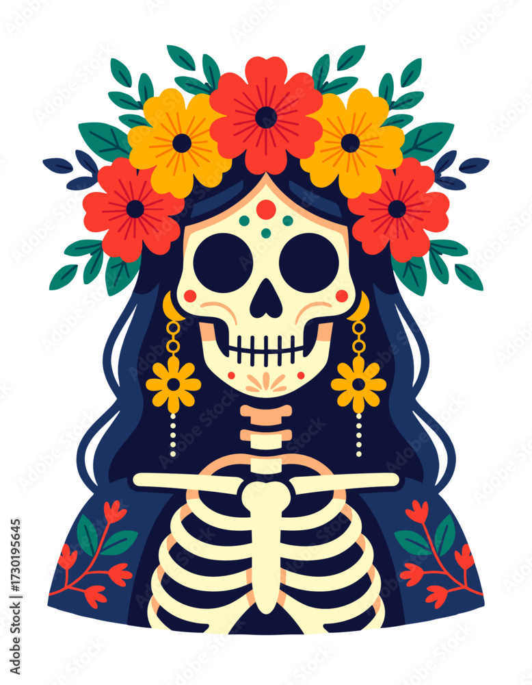 Mexican Sugar Skull Girl Day of Dead Floral Calavera #1730195645