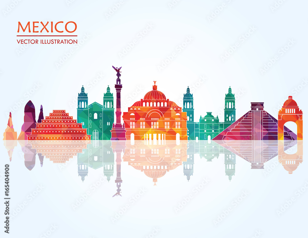 Mexico famous landmarks skyline. Vector illustration #165404900