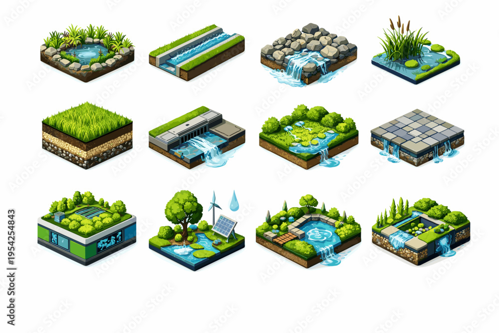 Micropark vector native icons absorption urban climate slot management icon park inlet #1954254843