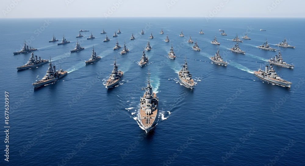 Military fleet sailing formation ocean ships war naval defense #1677630997