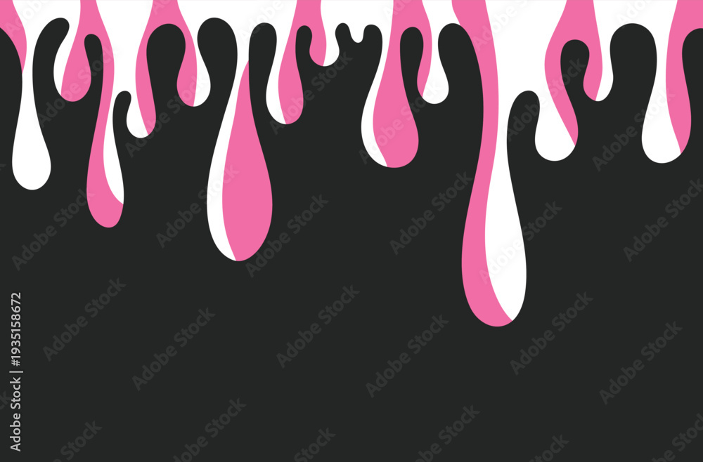 Milk and strawberry background. Abstract liquid melting candy border. Vector template background of pink and white caramel sauce. #1935158672