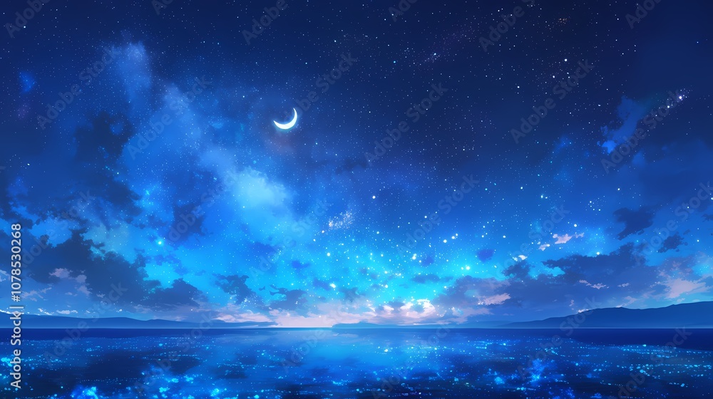 Milky Way Star Beach illustration poster background #1078530268