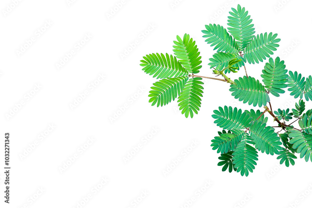 Mimosa pudica green foliage ( Shy plant) isolated on transparent background. PNG transparency #1032271343