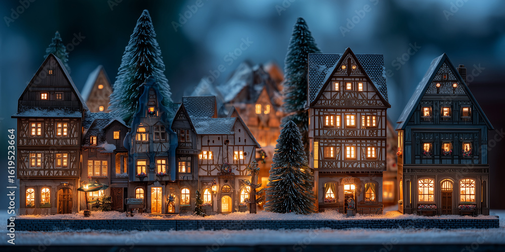 Miniatur-Altdeutsches Dorf aus Papier, Weihnachtsstimmung, Nachtbeleuchtung, Weihnachtsdeko, Feiern schmücken #1619523664