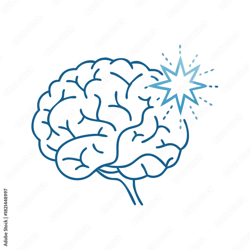 Minimal brain illustration with spark for promoting cognitive accessibility support in education and health sectors #1821448997