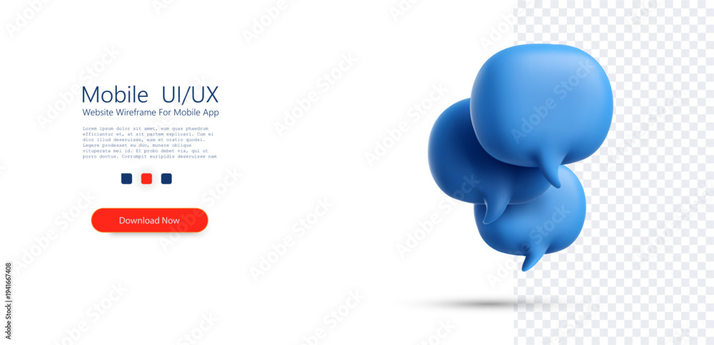 Minimal 3D speech bubble icon cluster with blue rounded chat symbols isolated on transparent background, representing messaging, communication, conversation, support, and social interaction. #1941667408