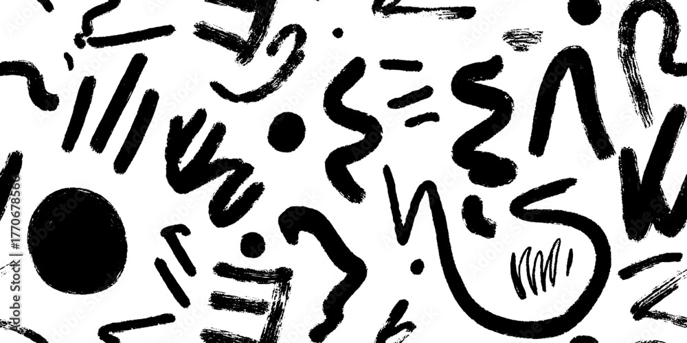 Minimalist black and white abstract pattern with marker brushstrokes for artistic design #1770678566