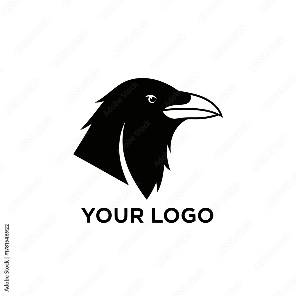 Minimalist Black Raven Head Logo Design on White Background, Customizable #1781546922