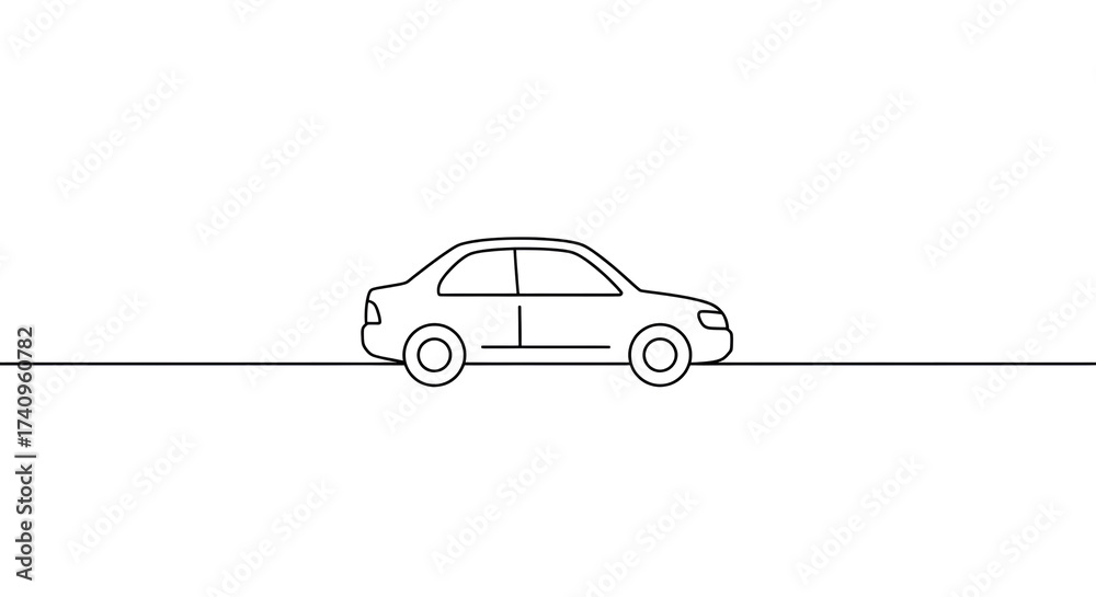 Minimalist Continuous Line Art Drawing of a Modern Sedan Car #1740960782