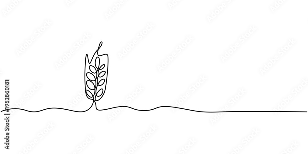 Minimalist, continuous one line drawing of ears of wheat vector illustration, Wheat Berry Continuous Line Art Illustration, One continuous line. Spikelet of wheat. Spikelet of a cereal plant #1952860181
