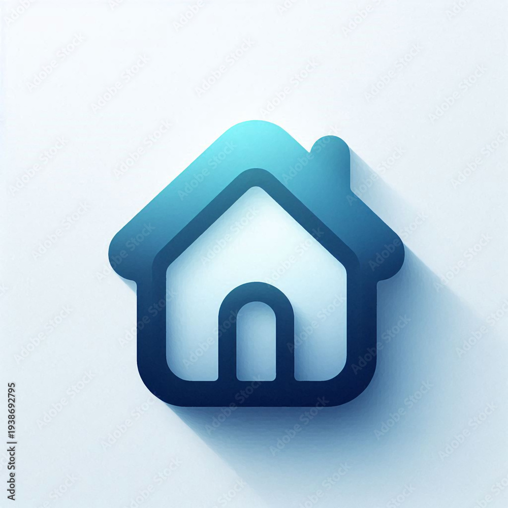 Minimalist home icon, modern UI design, clean vector style, rounded corners, soft shadow, blue gradient, centered on white background, flat design, high resolution, app icon style #1938692795