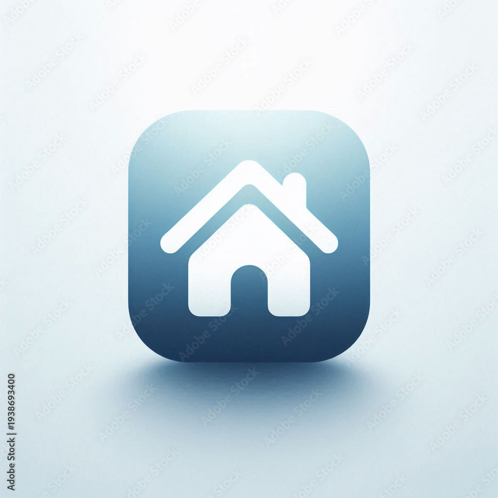 Minimalist home icon, modern UI design, clean vector style, rounded corners, soft shadow, blue gradient, centered on white background, flat design, high resolution, app icon style #1938693400