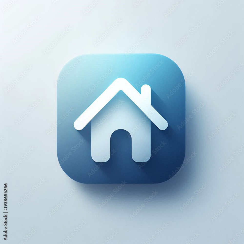 Minimalist home icon, modern UI design, clean vector style, rounded corners, soft shadow, blue gradient, centered on white background, flat design, high resolution, app icon style #1938695266