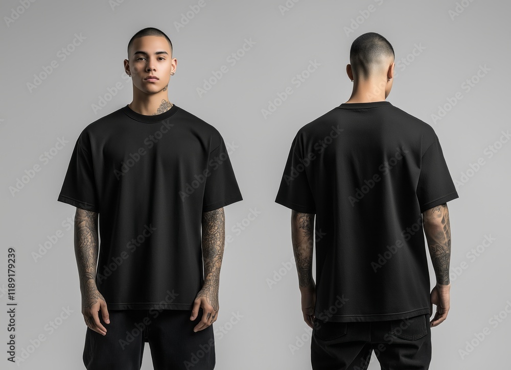 Minimalist oversized black t-shirt design mockup for fashion branding and apparel display #1189179239