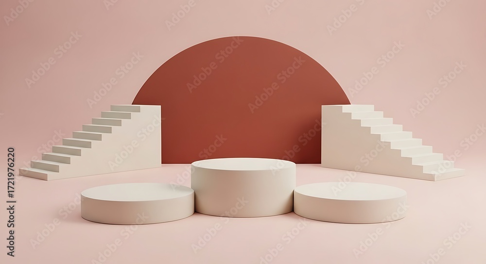 Minimalist Podium Display with Stairs and Geometric Design, 3D Render #1721976220