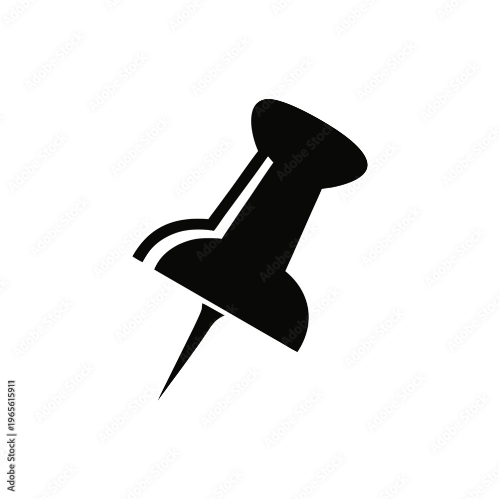 Minimalist Push Pin Icon – Modern Black Thumbtack Silhouette Vector Design #1965615911