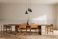 Minimalist wooden dining interior featuring long table, modern chairs, pendant lights and calm neutral space in contemporary design architecture concept. 3D Rendering #1964184486