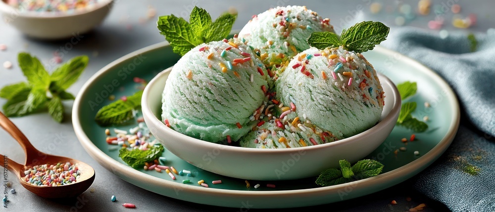 Mint ice cream scoops with sprinkles (2) #1572143377