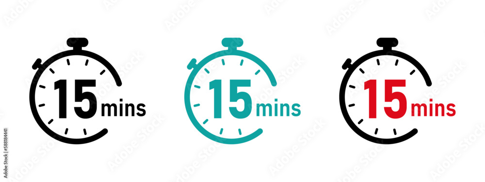 15 minutes timer, stopwatch or countdown vector icons #588184441