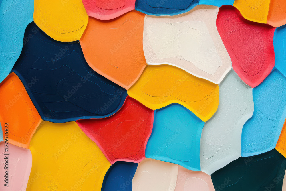 Modern abstract artwork with irregular flat shapes in vibrant colors, creating a dynamic, playful, and visually engaging composition suitable for contemporary design and digital media. #1779715872