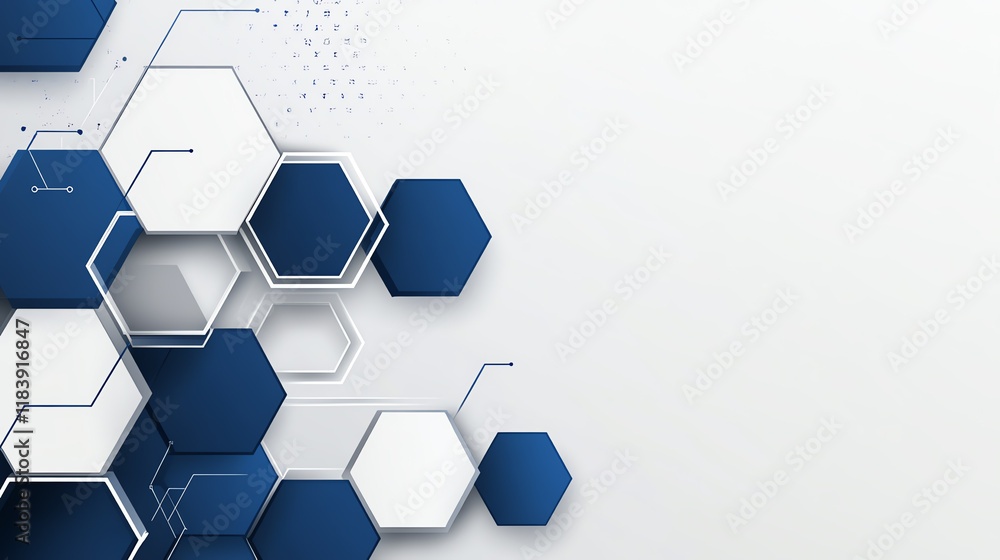 Modern abstract background illustrating interconnected hexagons in blue shades, perfect for technology and innovation themes. #1183916847