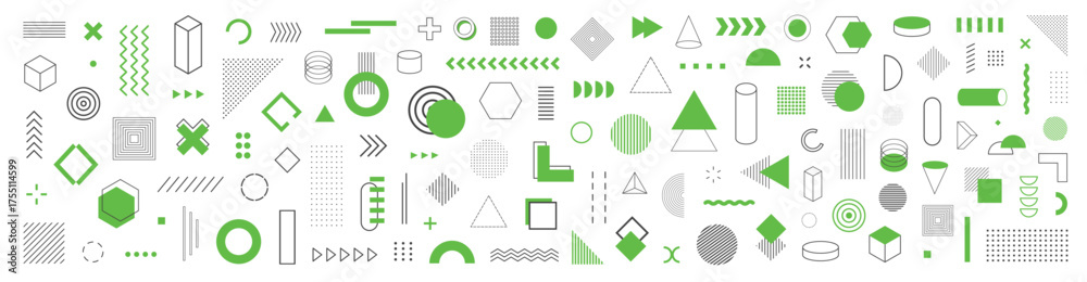 Modern abstract geometric pattern with green and black shapes. Collection of geometric shapes in Memphis design style. Vector icons #1755114599