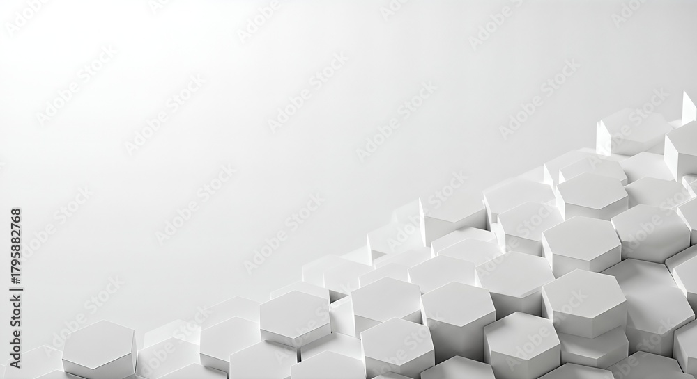 Modern abstract white hexagonal 3D background with clean geometric shapes and subtle lighting creating a sense of innovation and depth perfect for technology or design concepts #1795882768