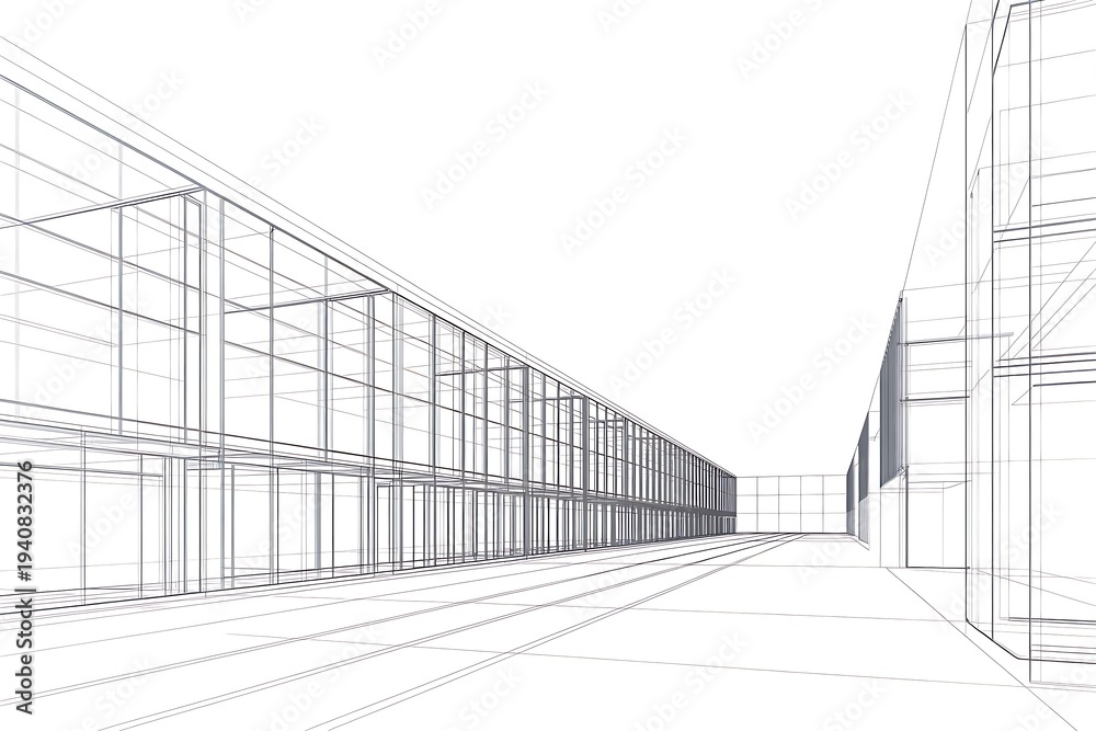 Modern architectural sketch of sleek glass building exterior #1940832376