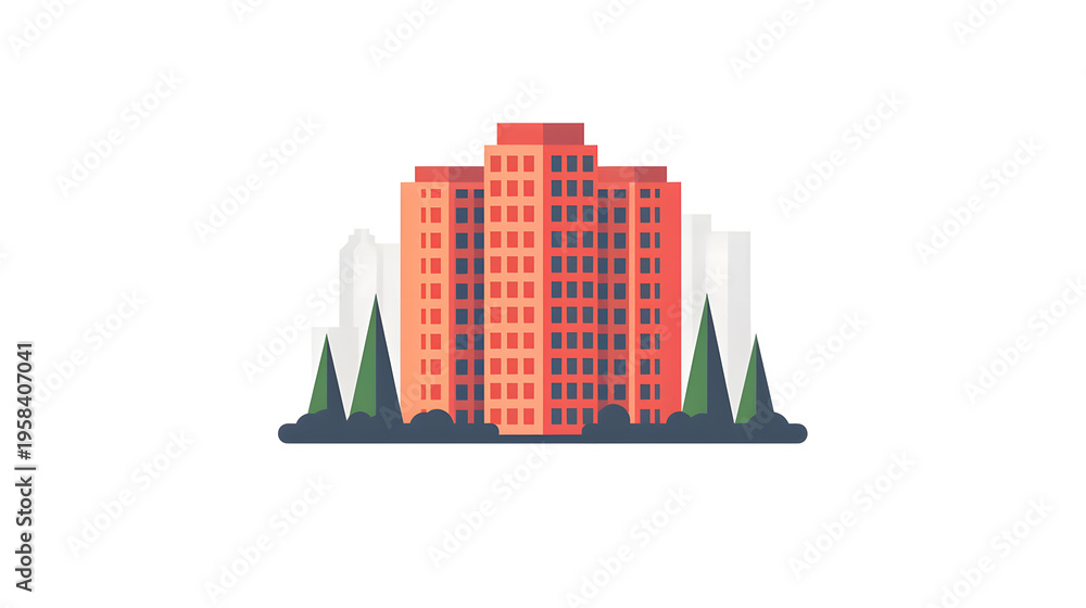 Modern city building apartment block flat design #1958407041