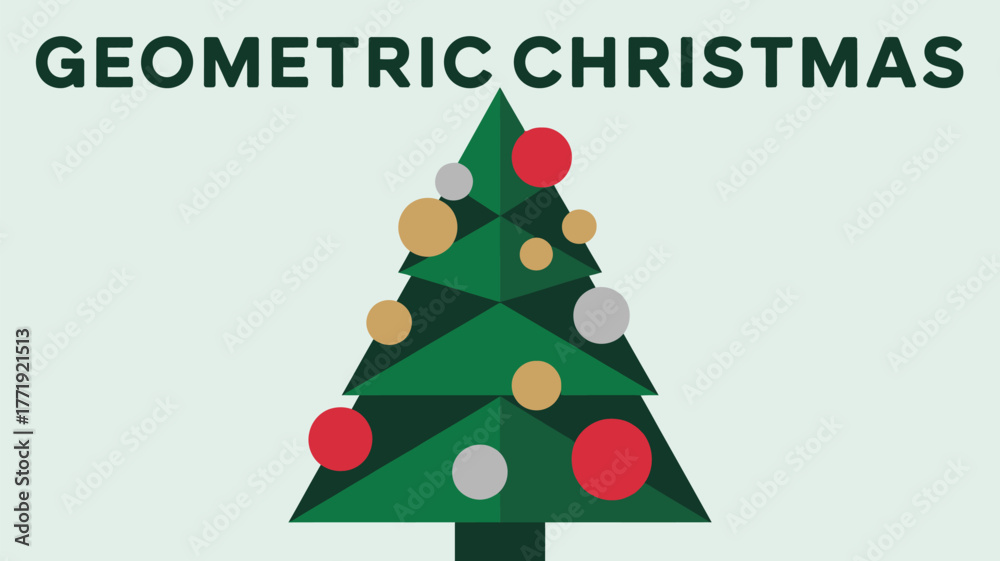 Modern geometric Christmas tree illustration with festive ornaments, perfect for holiday designs and festive greetings #1771921513