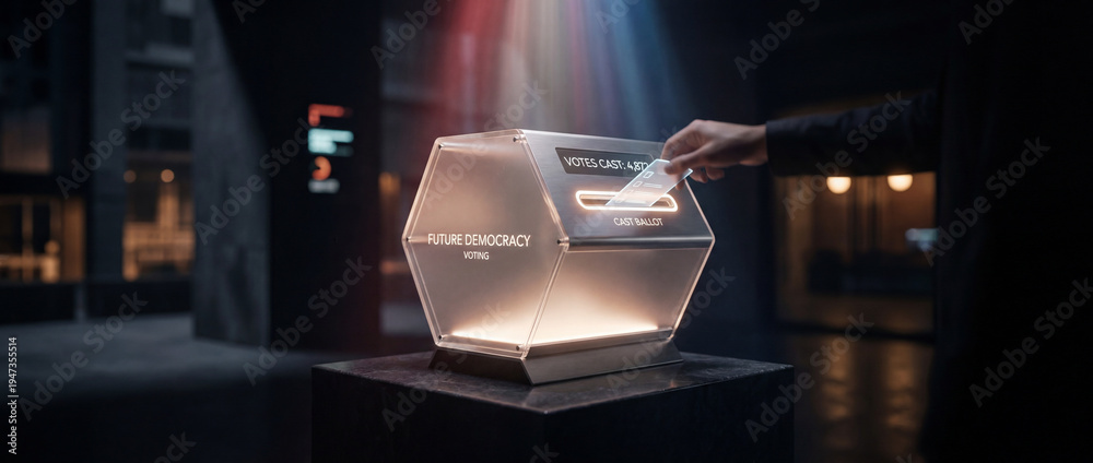 Modern Glowing Futuristic Voting Ballot Box for Digital Democracy#1947355514