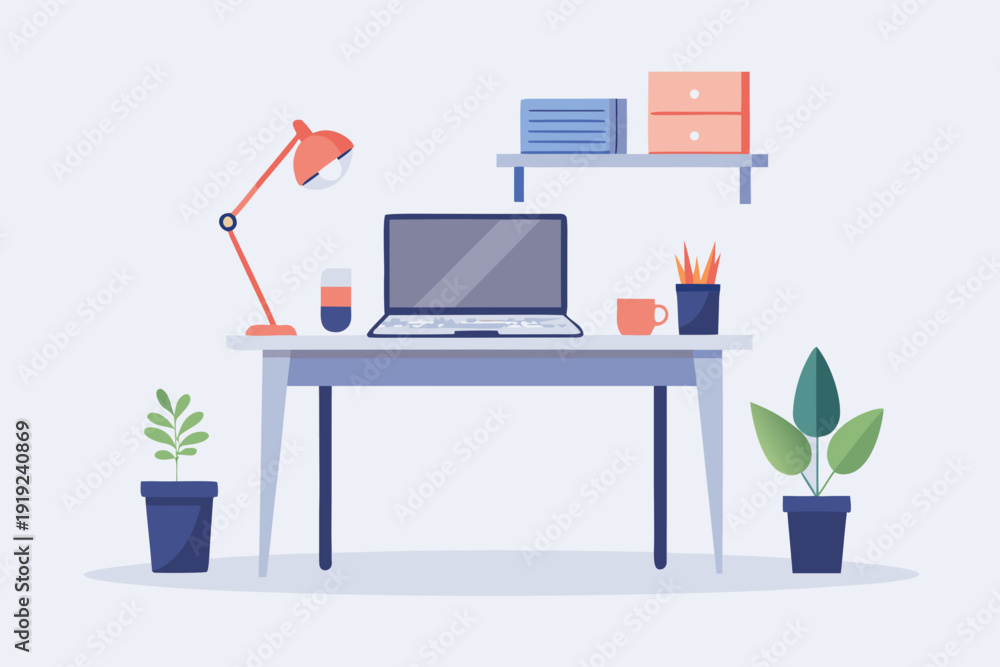 Modern home office setup with laptop and plants on desk #1919240869