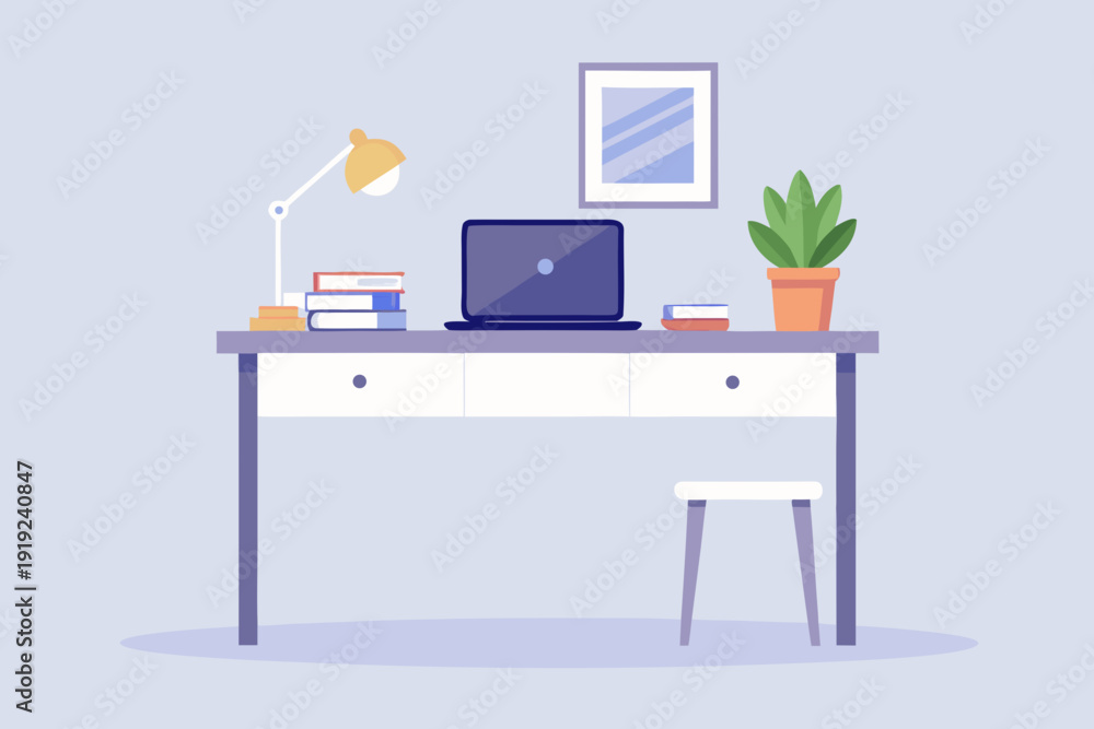 Modern home office workspace with laptop and books on desk #1919240847
