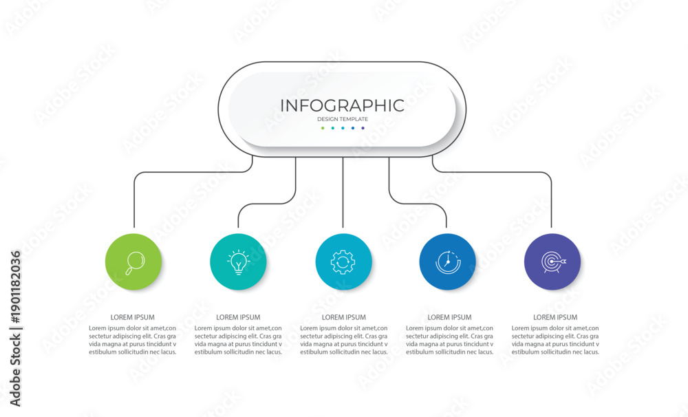 Modern infographic template. Creative circle element design with marketing icons. Business concept with 5 options, steps, sections #1901182036