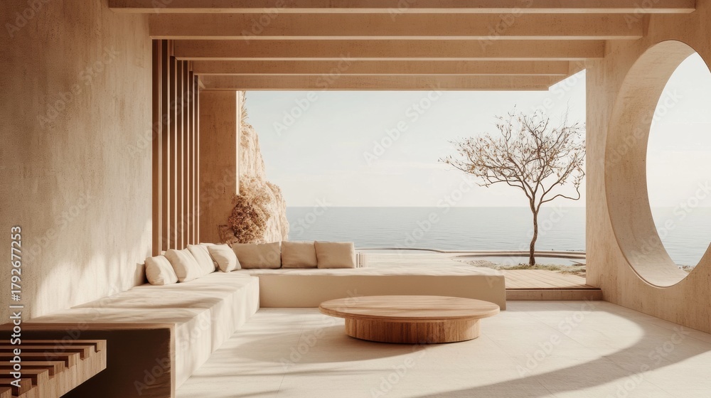 Modern living room beautiful view ocean has high Beach aesthetic villa house #1792677253