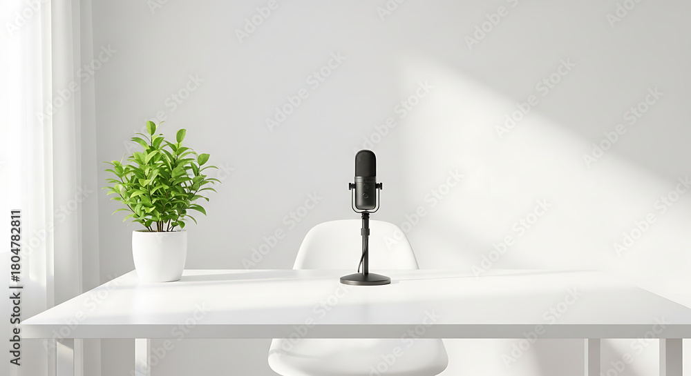 Modern luxury bathroom interior design with clean white flowers, mirror, and bathtub #1804782811