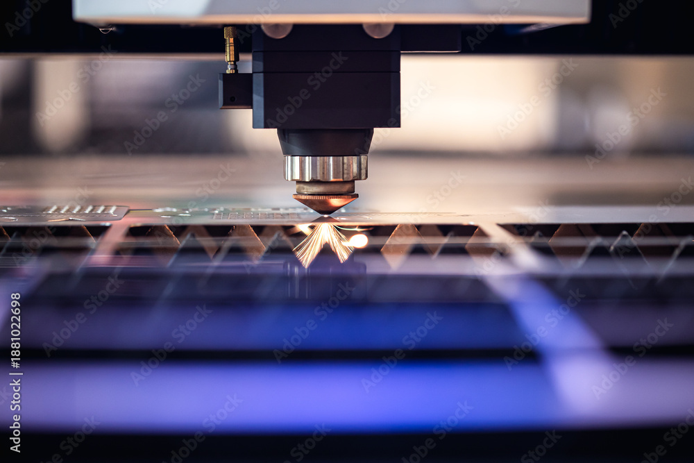 Modern metalworking plant CNC milling machine. Processing and laser cutting for metal in the industrial. Motion blur. Industrial exhibition of machine tools. #1881022698