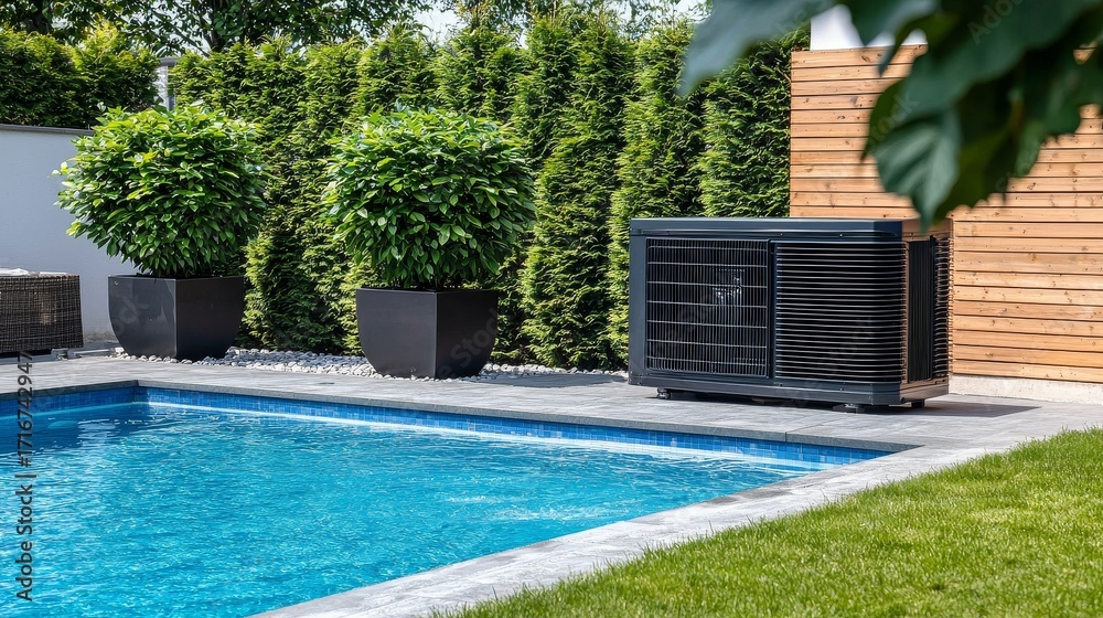Modern Pool Heat Pump System Landscaping, Outdoor Design, Poolside Installation, Heat Pump, Pool Heating Pool heater, landscaping design #1716742947