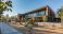 Modern public school exterior with playground and green space on a sunny day #1251140845