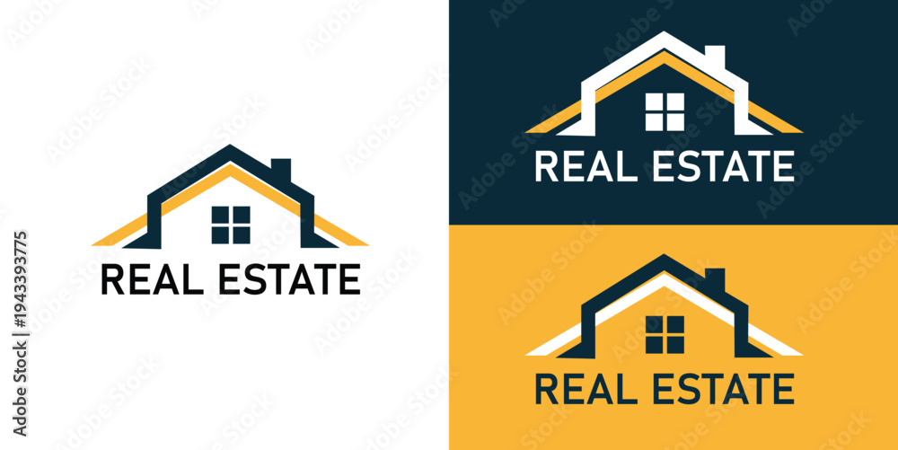Modern Real Estate Roofline Logo Set Featuring Minimal House Silhouette Branding for Property Development Companies and Housing Agencies #1943393775
