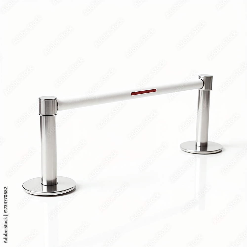 Modern retractable barrier with silver posts and red indicator tape #1734770682