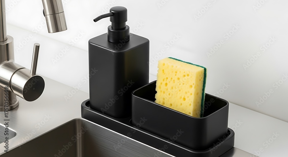 Modern soap dispenser and sponge holder combo for kitchen sink. #1757056608