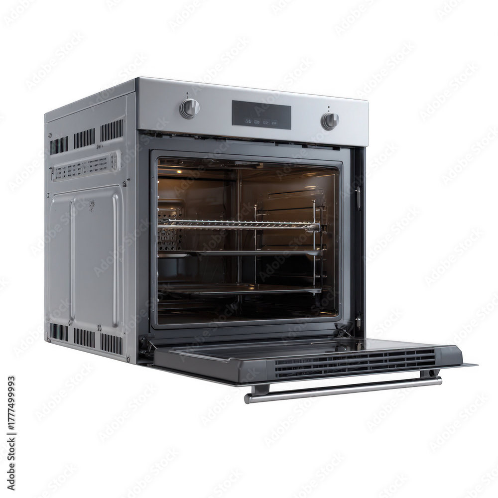 Modern stainless steel built in electric oven with open door isolated on transparent background #1777499993