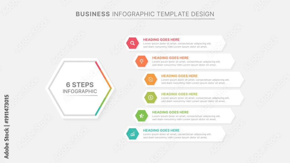 Modern 6 Steps Hexagonal Business Infographic Process Diagram Template #1911473015
