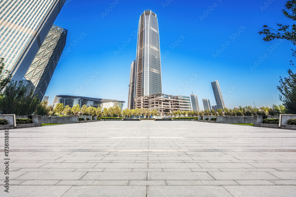 Modern Urban Landscape with Skyscrapers and Clear Blue Sky #1738118813