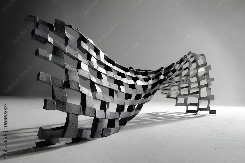 Moderne Skulptur mit geometrischer Gitterstruktur in Schwarz Weiß #1693675377