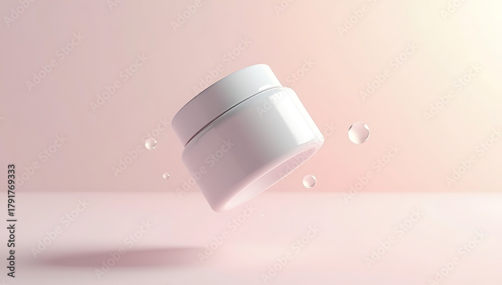 “Moisturizing cream jar levitating in air, soft pastel background with subtle reflection and rim light, luxury skincare product mockup, glossy texture, high-end beauty advertising aesthetic.” #1791769333