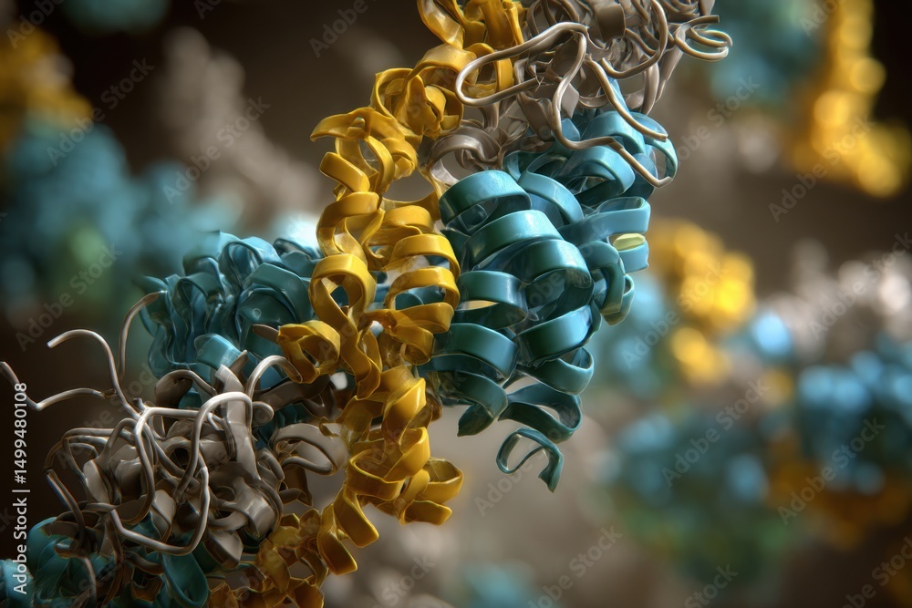 Molecular Protein Structure Close Up Illustration Showing Alpha Helix and Beta Sheet Conformations Science Education #1499480108